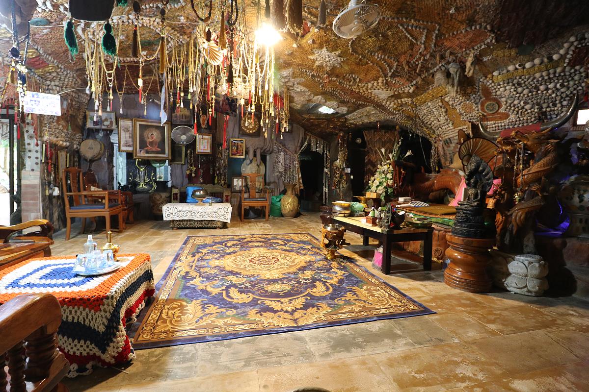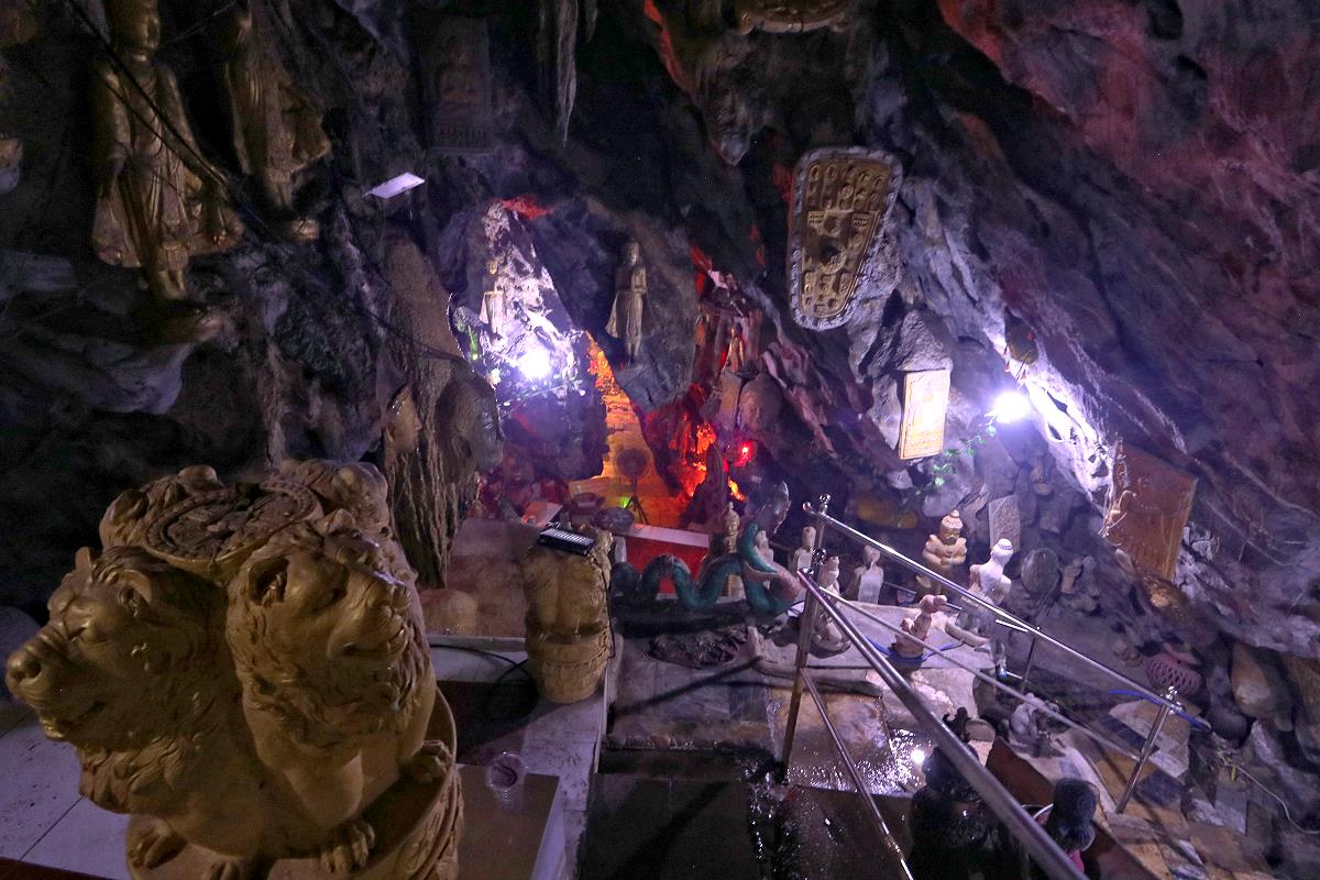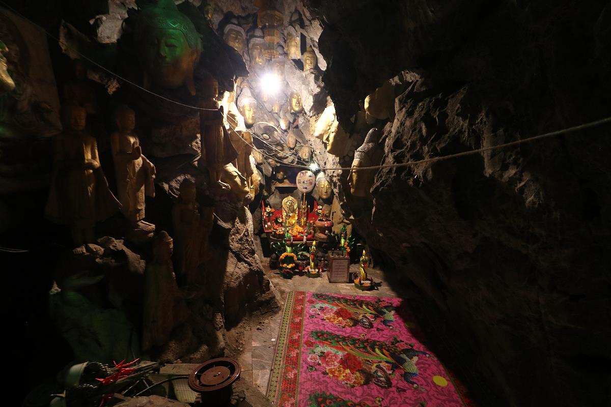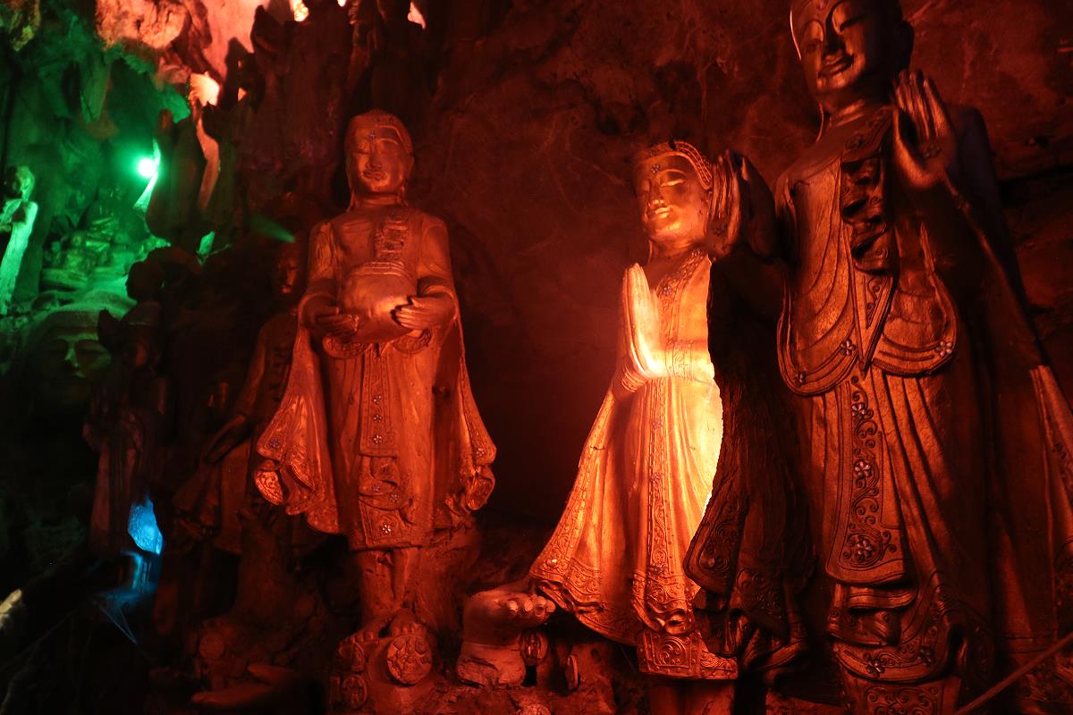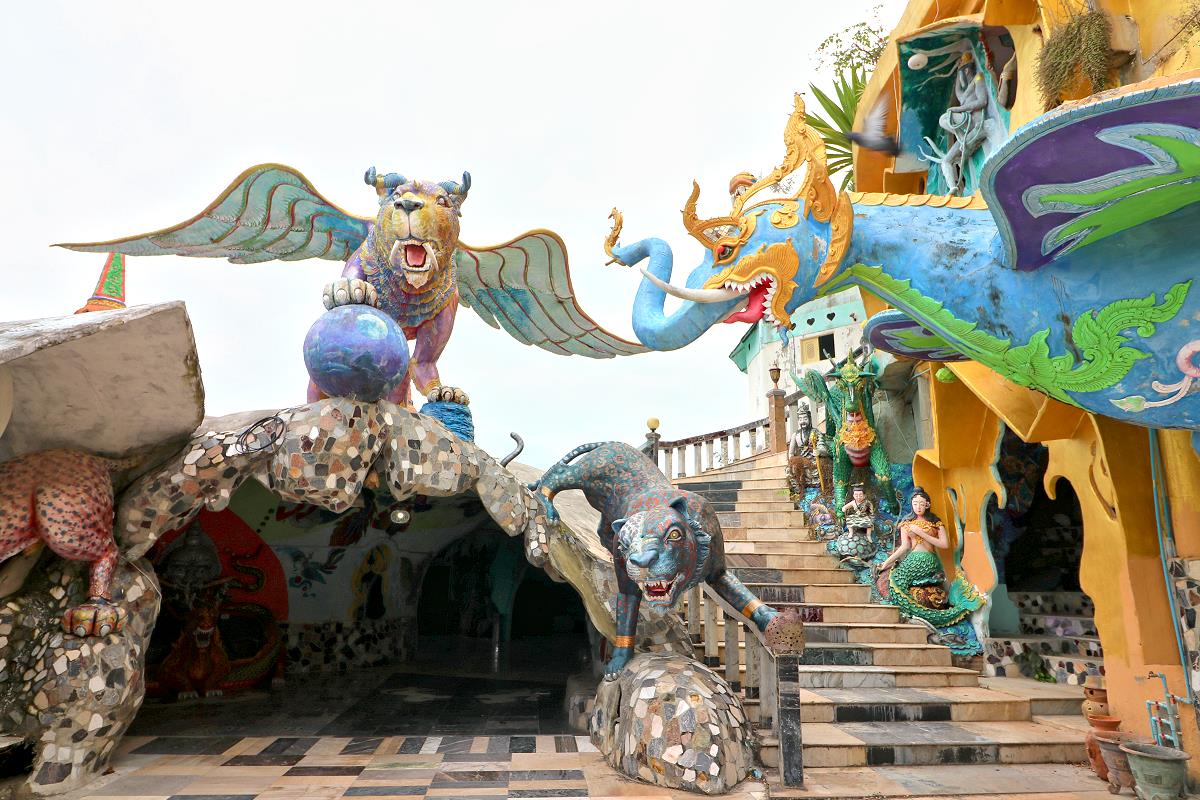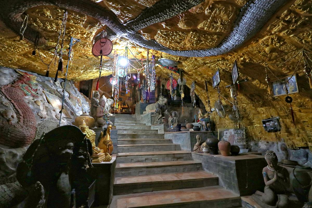 Auffällig auf dem gesamten Tempelbereich sind Hunderte von mystischen Skulpturen, die hier und da verstreut sind. Auch viele Wandmalereien sind auf allen Etagen und den Höhlenzugang zu bewundern.